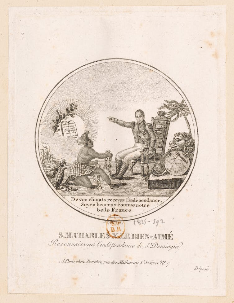 Le 17 avril 1825, Charles X, frère de Louis XVIII et nouveau roi de France, fit soudain volte-face. Il émit un décret stipulant que la France reconnaîtrait l’indépendance haïtienne, mais uniquement contre la somme de 150 millions de francs – soit près du double des 80 millions de francs que les États-Unis avaient payés pour le territoire de la Louisiane.