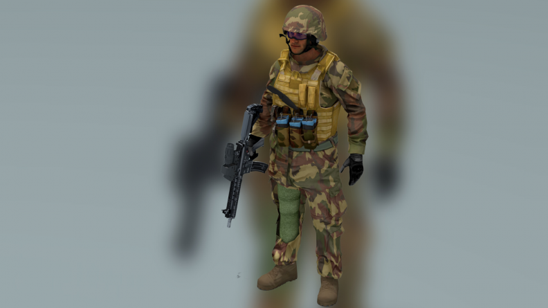 - Disposant d’une autonomie accrue, le combattant sera muni de 10 chargeurs de 30 cartouches.
